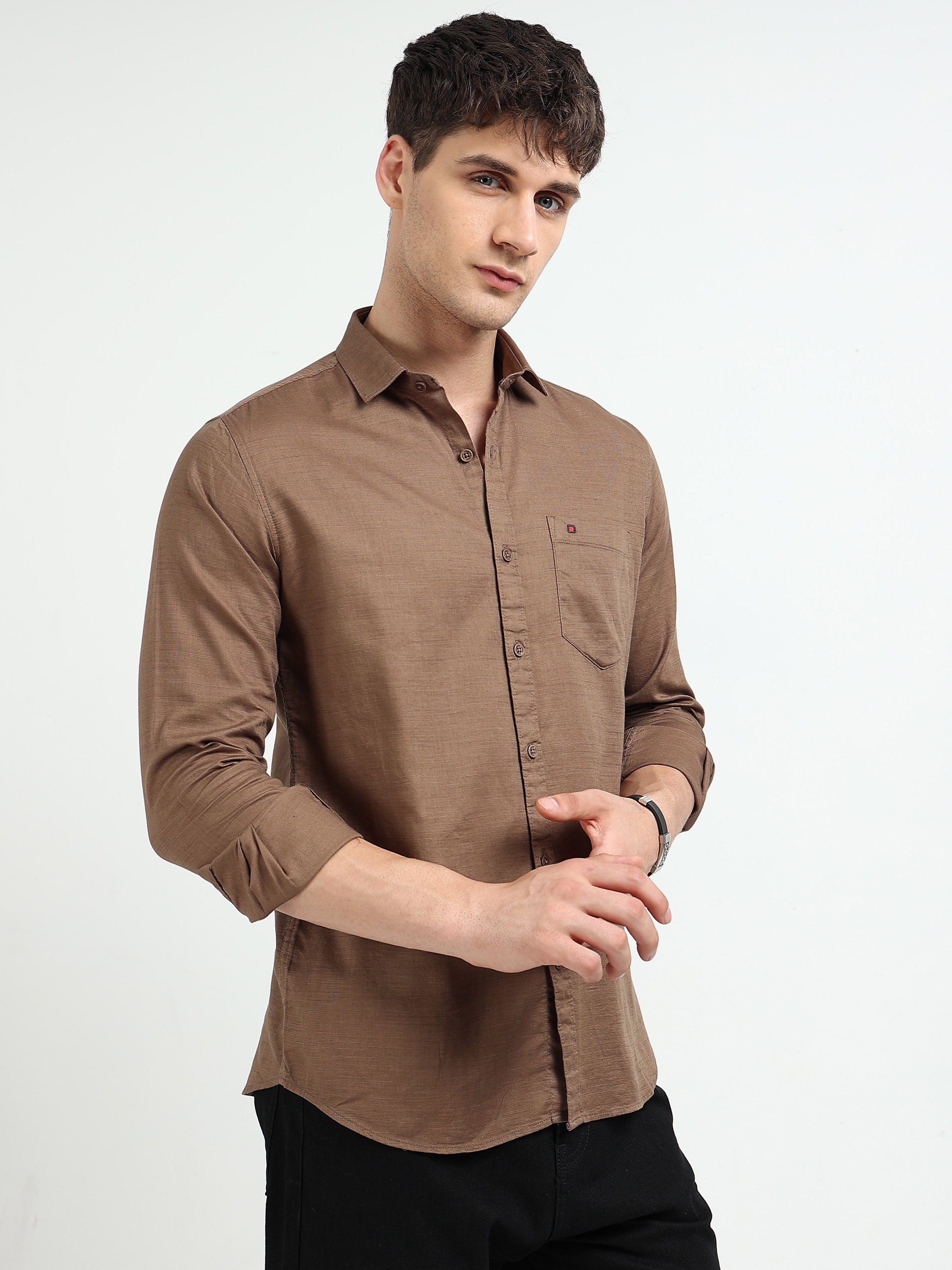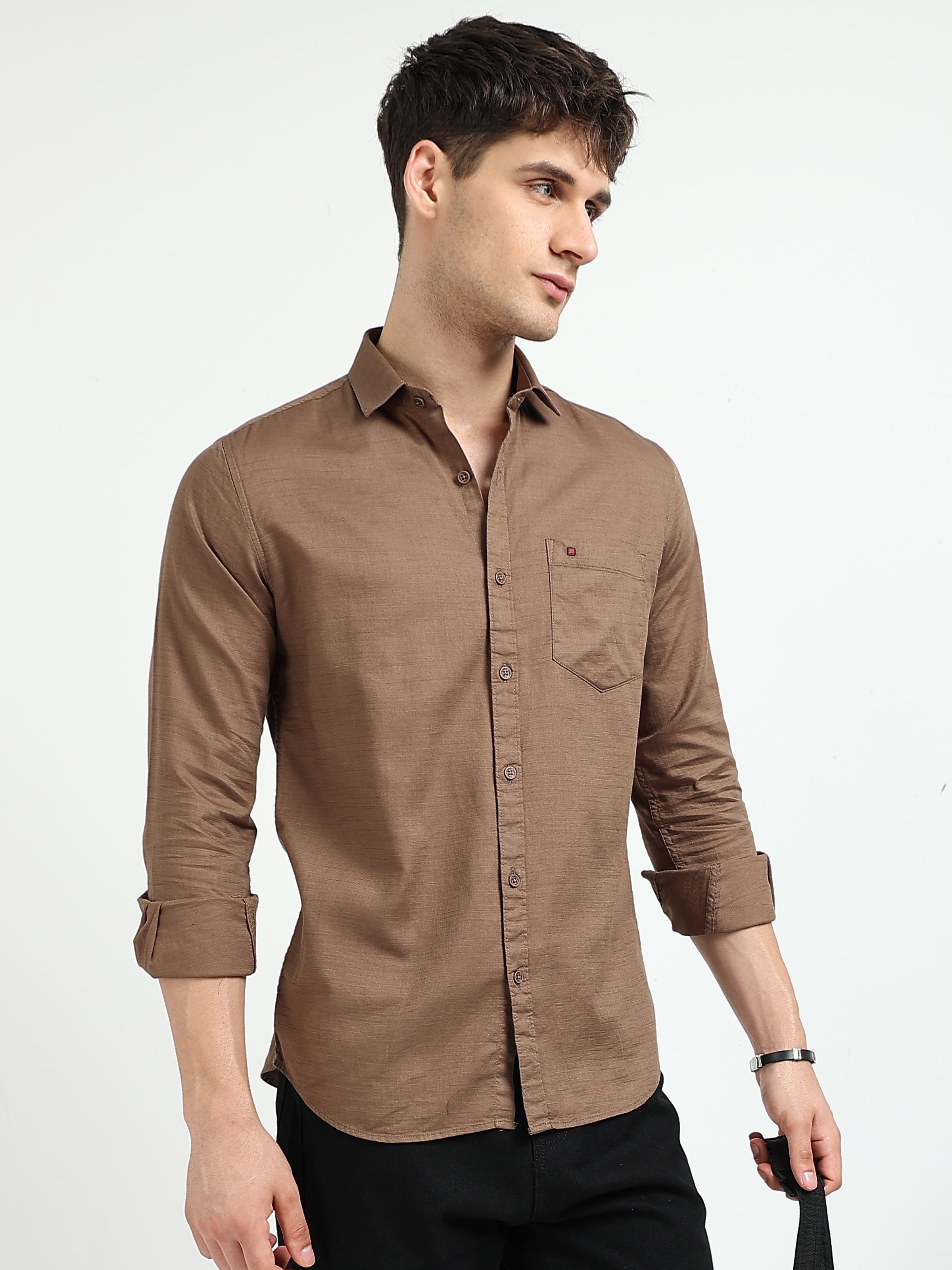 Keep your style effortless and refined with this Men’s Brown Solid Slim Fit Casual Shirt from Cool Colors. Designed in a refreshing green shade, this shirt offers a modern slim fit that enhances your silhouette while ensuring comfort throughout the day.
