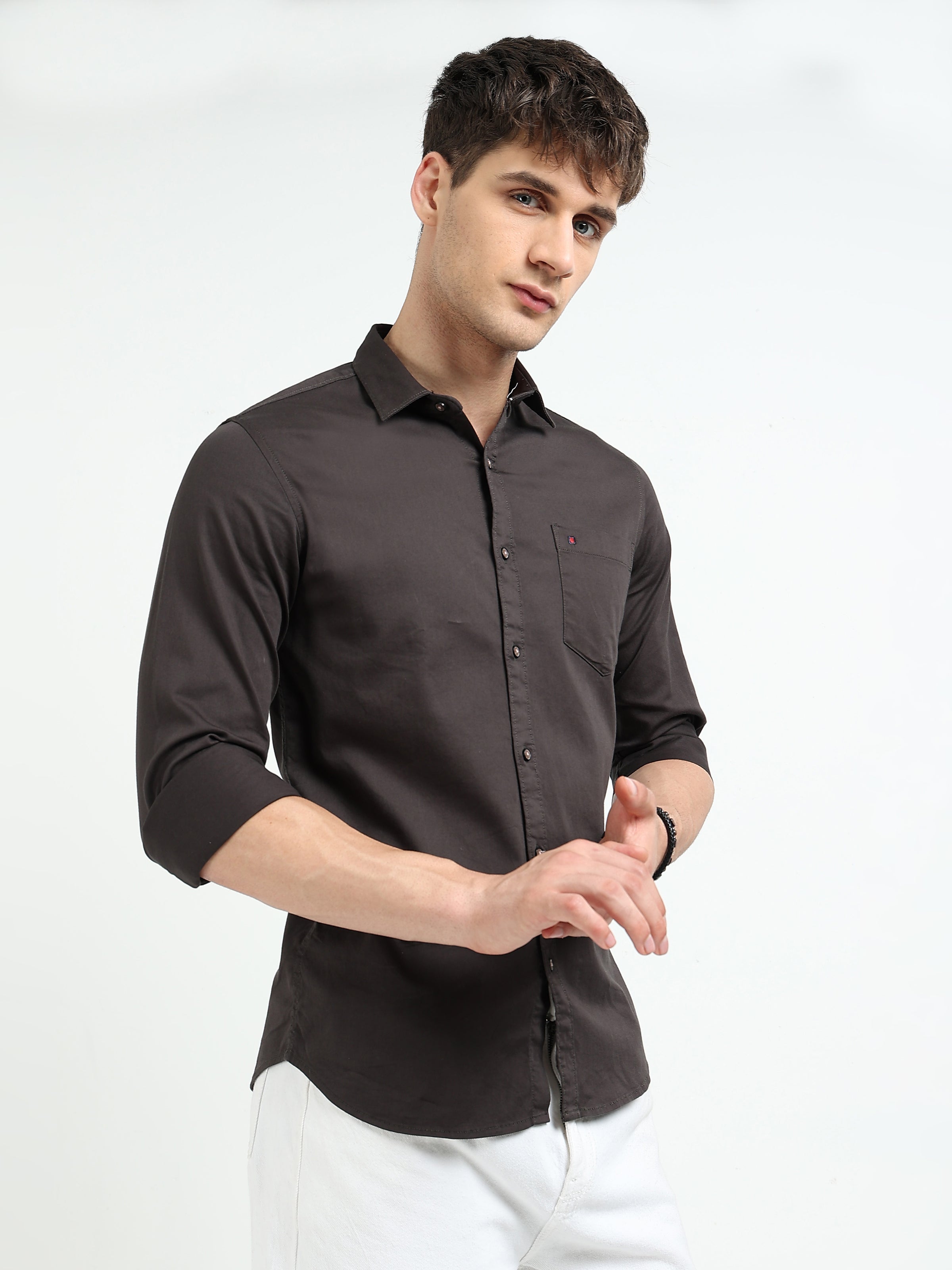 Keep your style effortless and refined with this Men’s Dark Green Solid Slim Fit Casual Shirt from Cool Colors. Designed in a refreshing green shade, this shirt offers a modern slim fit that enhances your silhouette while ensuring comfort throughout the day.
