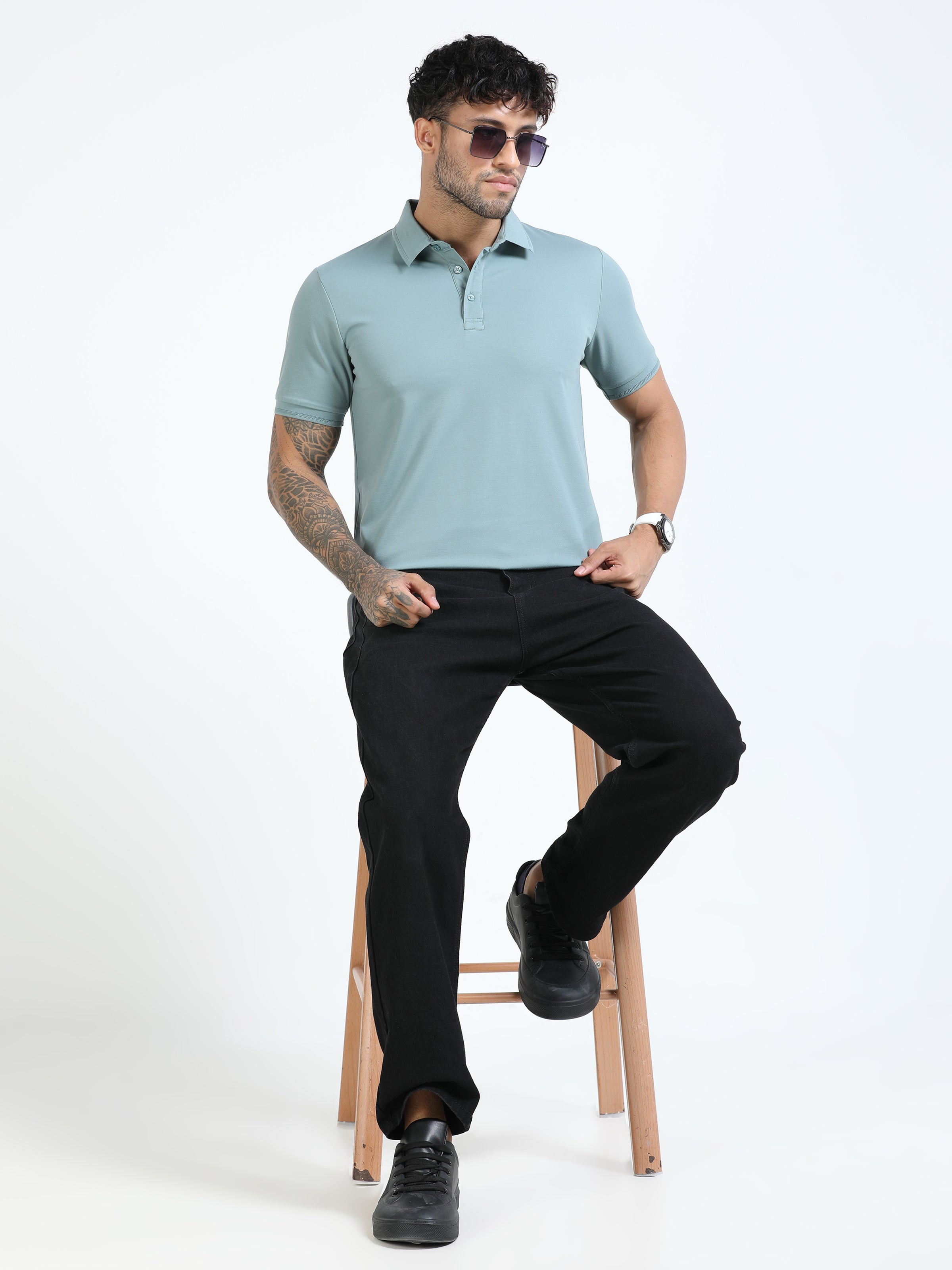 Men Pista Slim Fit Stretchable Solid Polo T-Shirt