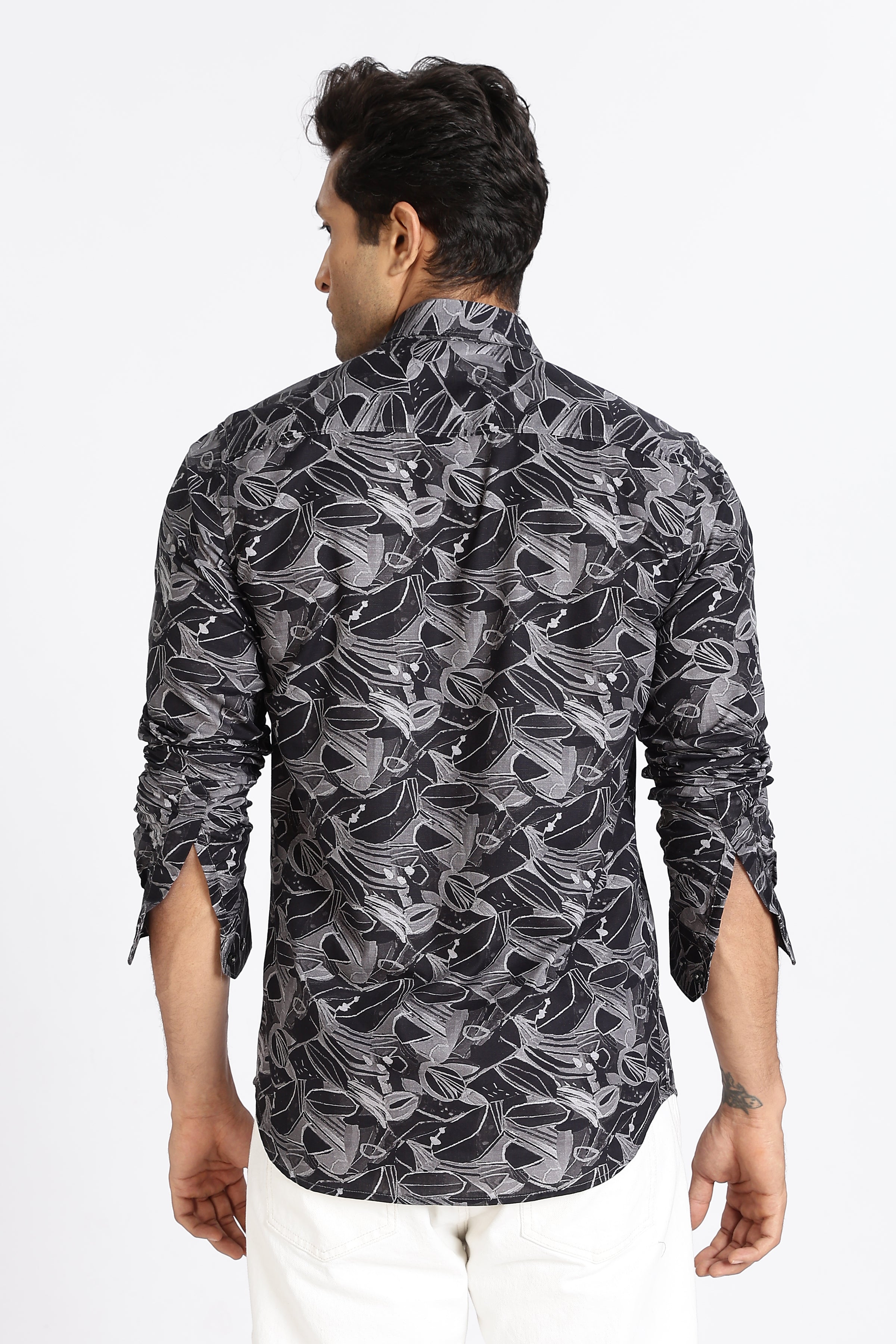 Men Black Floral Print Full Sleeve Slim Fit Casual Shirt