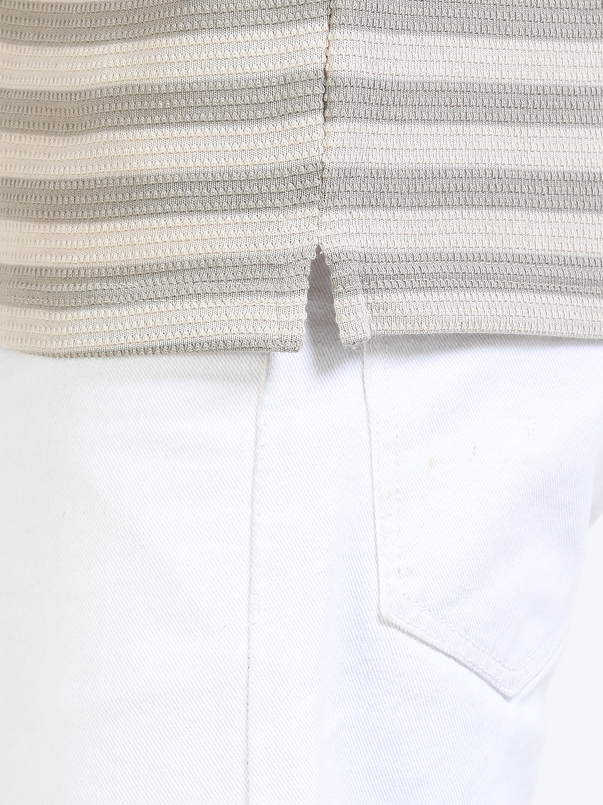 Men Cream Slim Fit Jacquard Stripes Polo T-Shirt