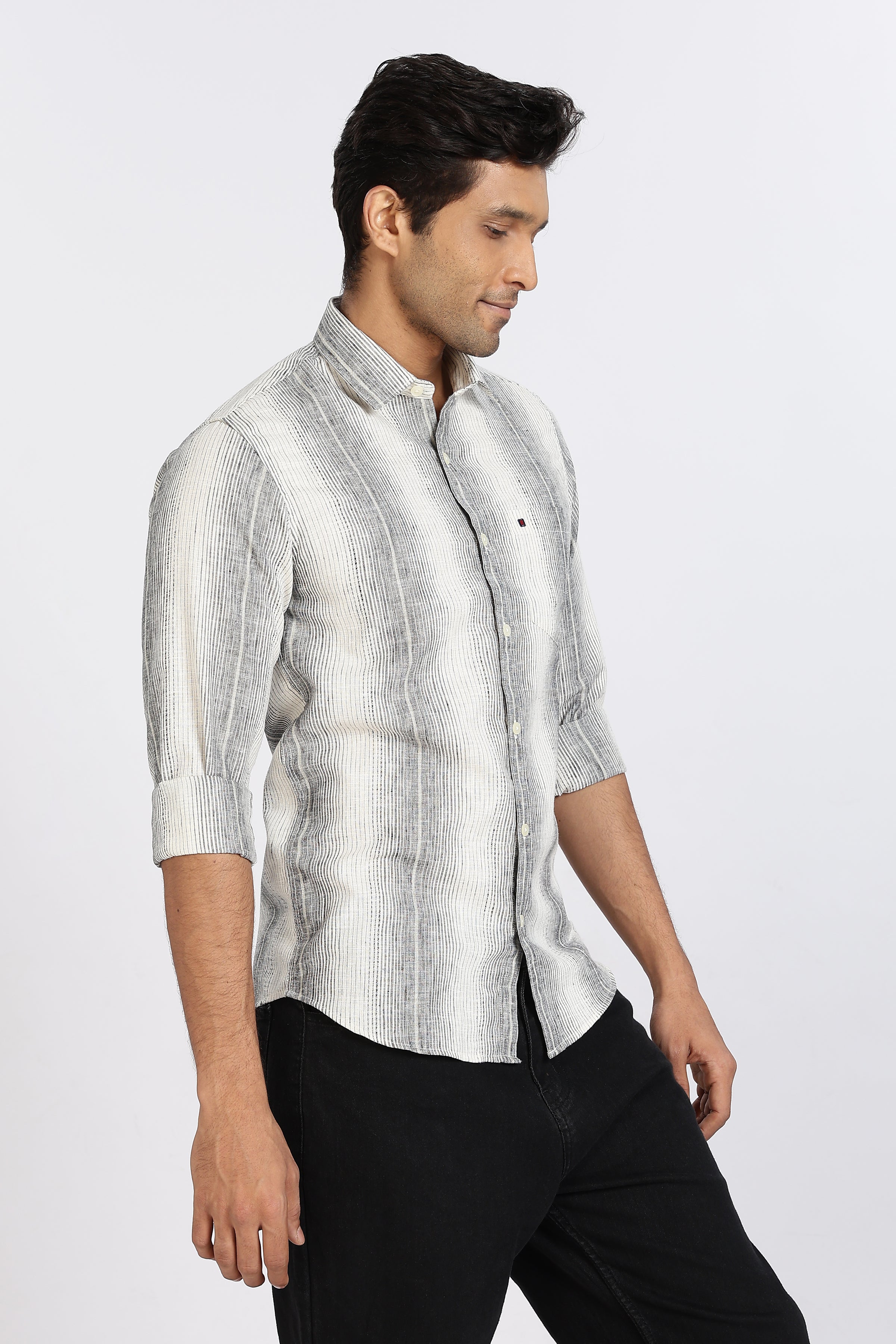 Men Black Stripes Full Sleeve Slim Fit Casual Shirts