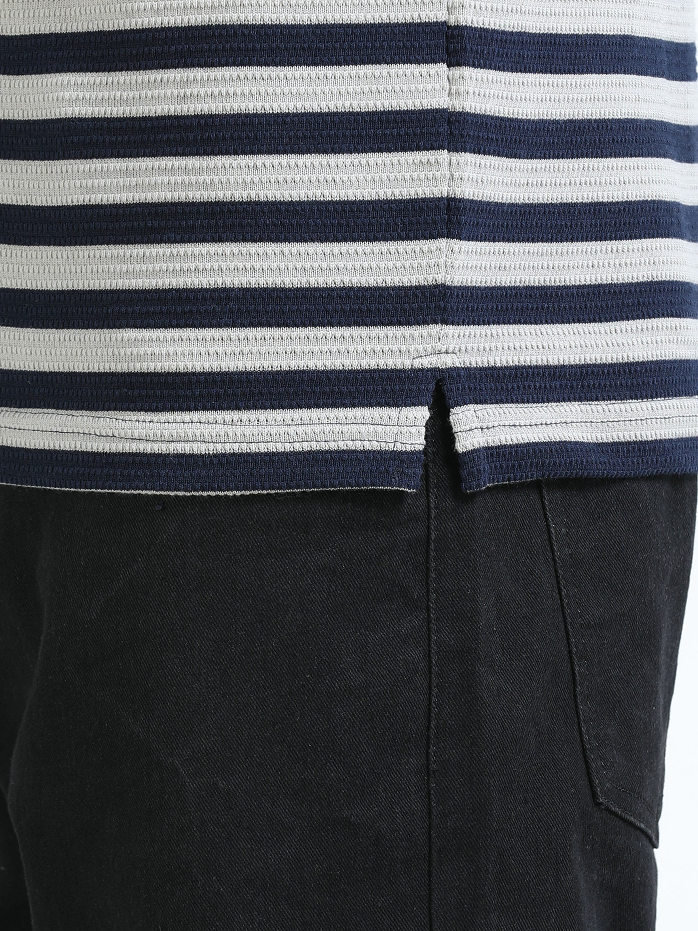 Men Navy Slim Fit Jacquard Stripes Polo T-Shirt