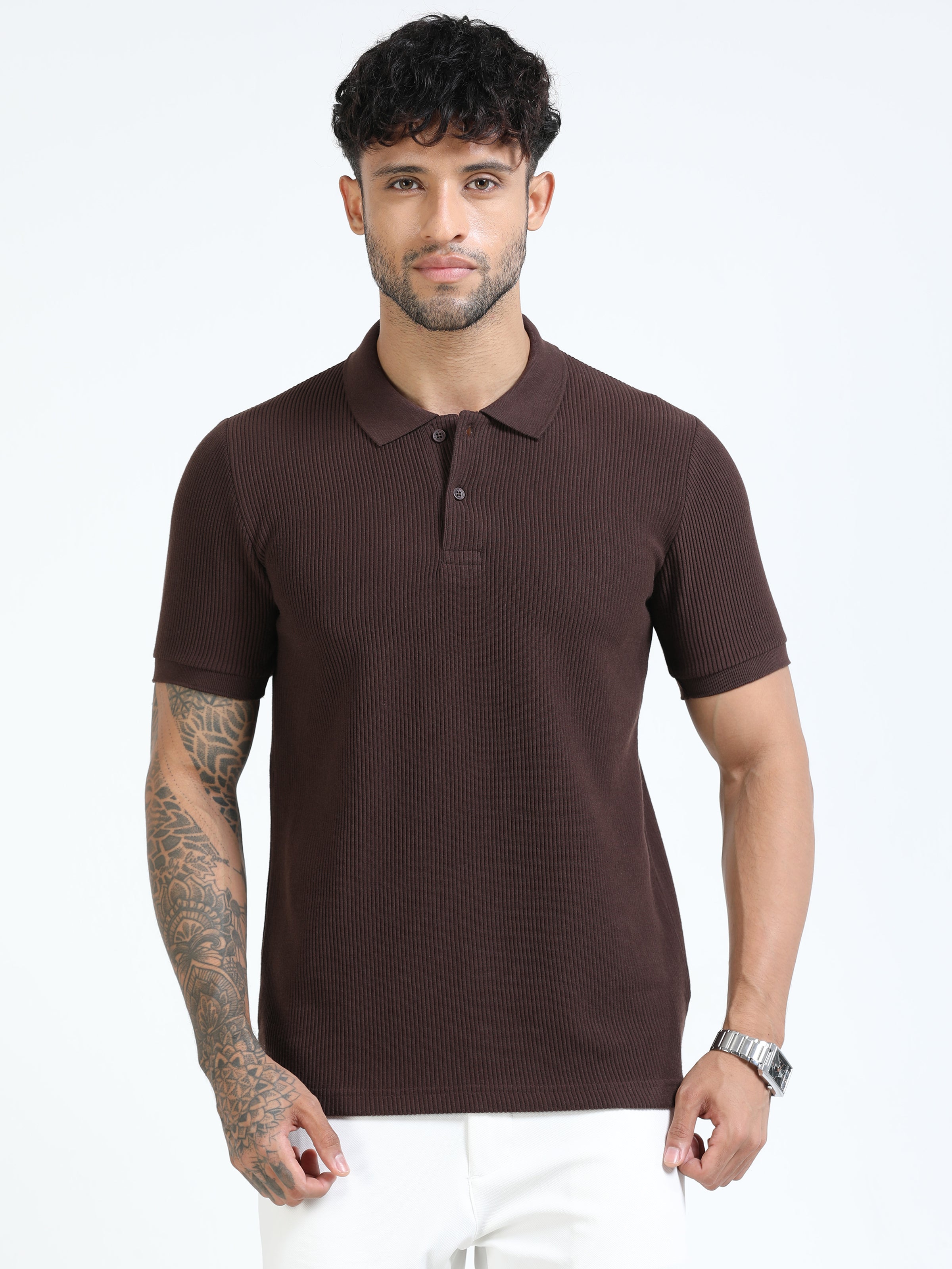Men Brown Slim Fit Drop Needle Polo T-Shirt