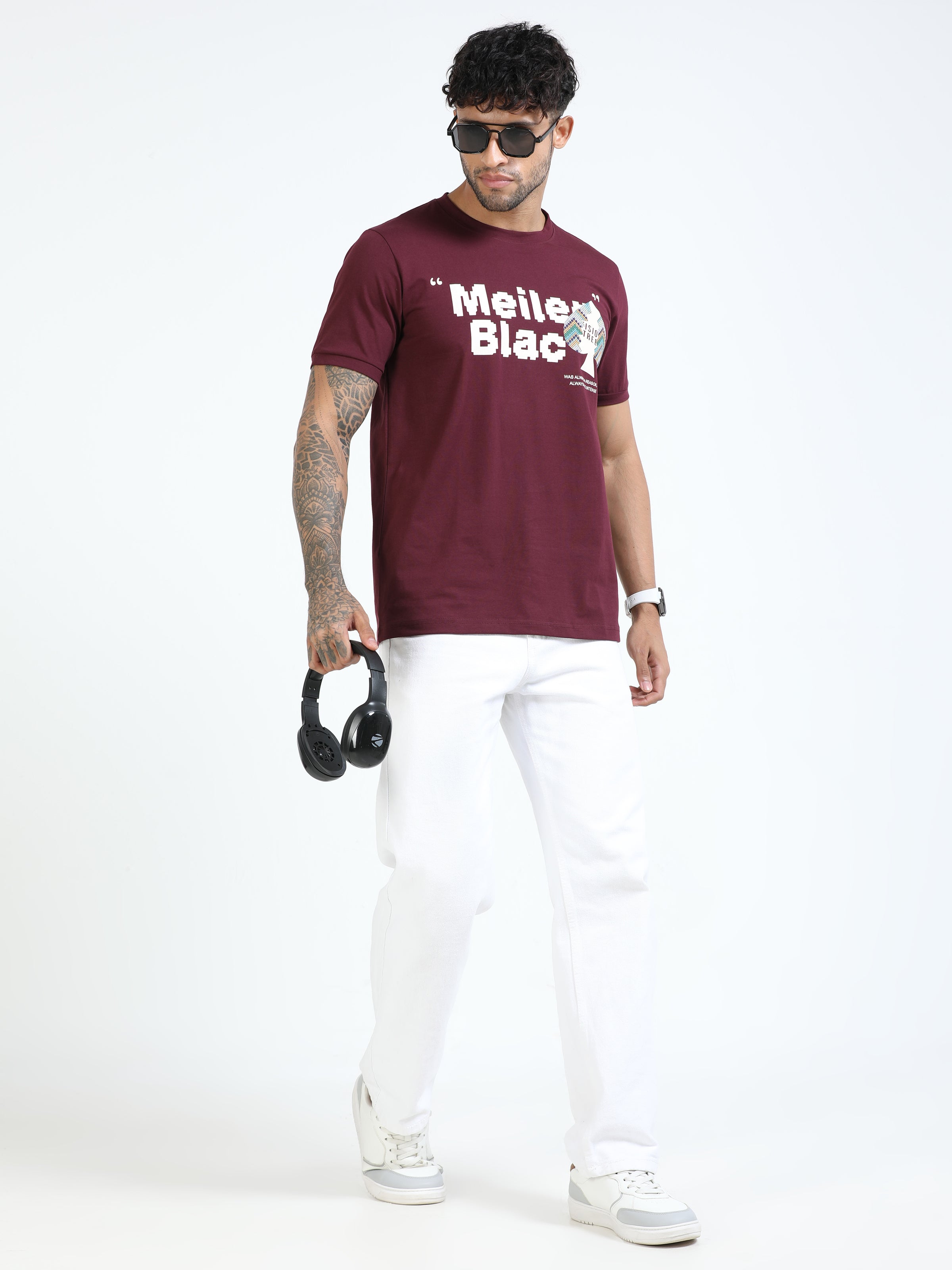 Men Maroon Slim Fit Printed Crew Neck T-Shirt