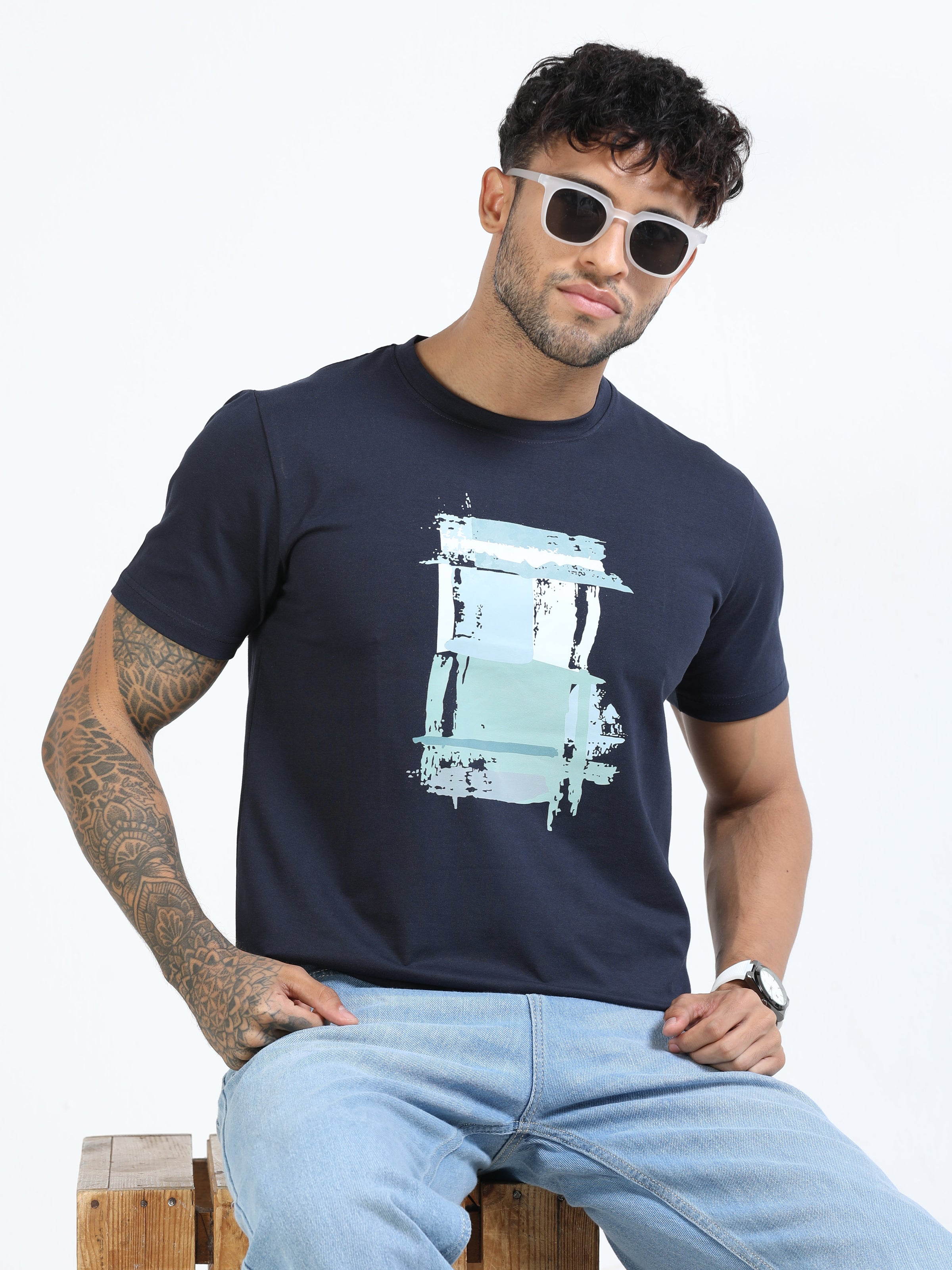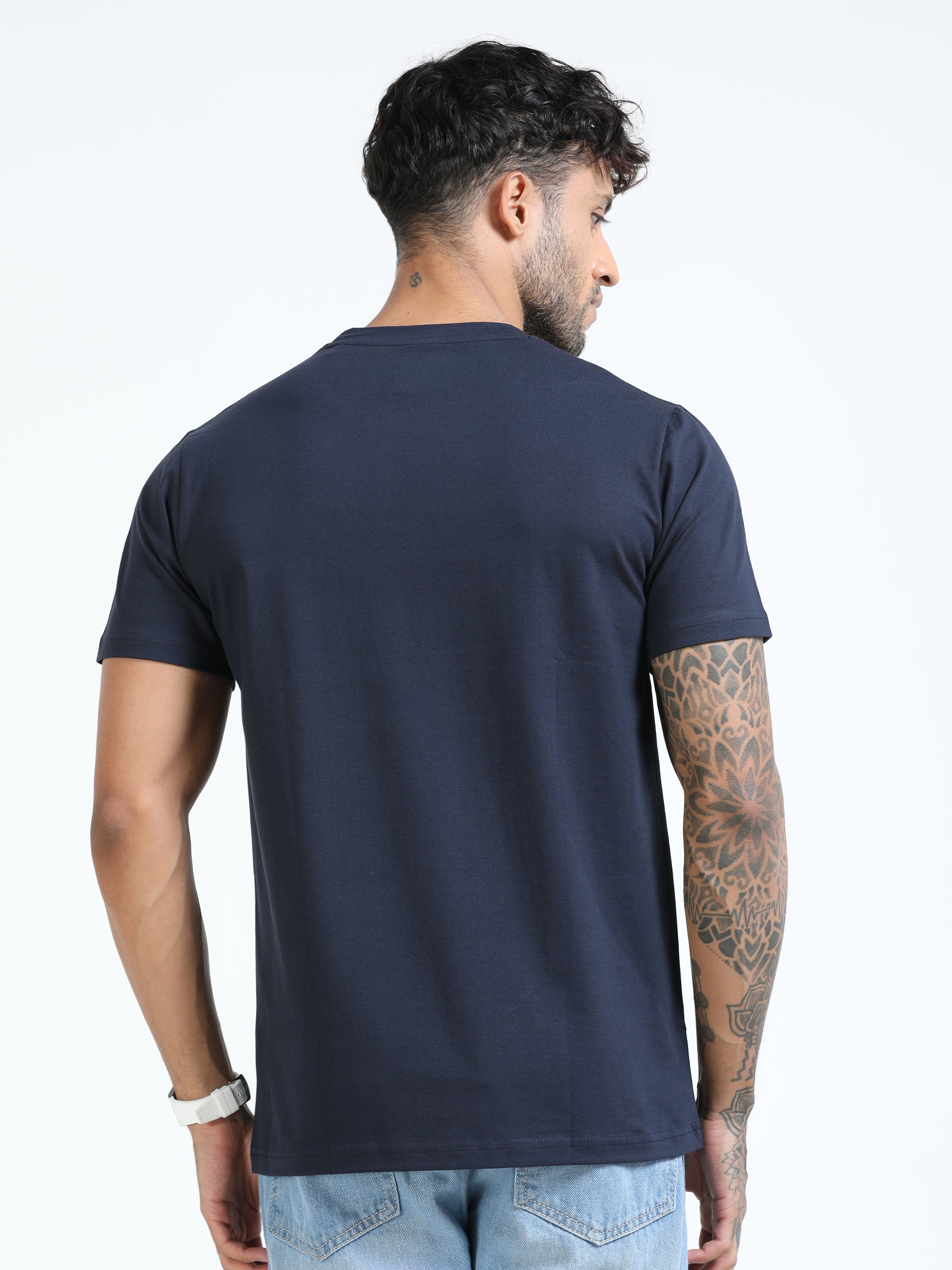 Men Blue Slim Fit Printed Crew Neck T-Shirt