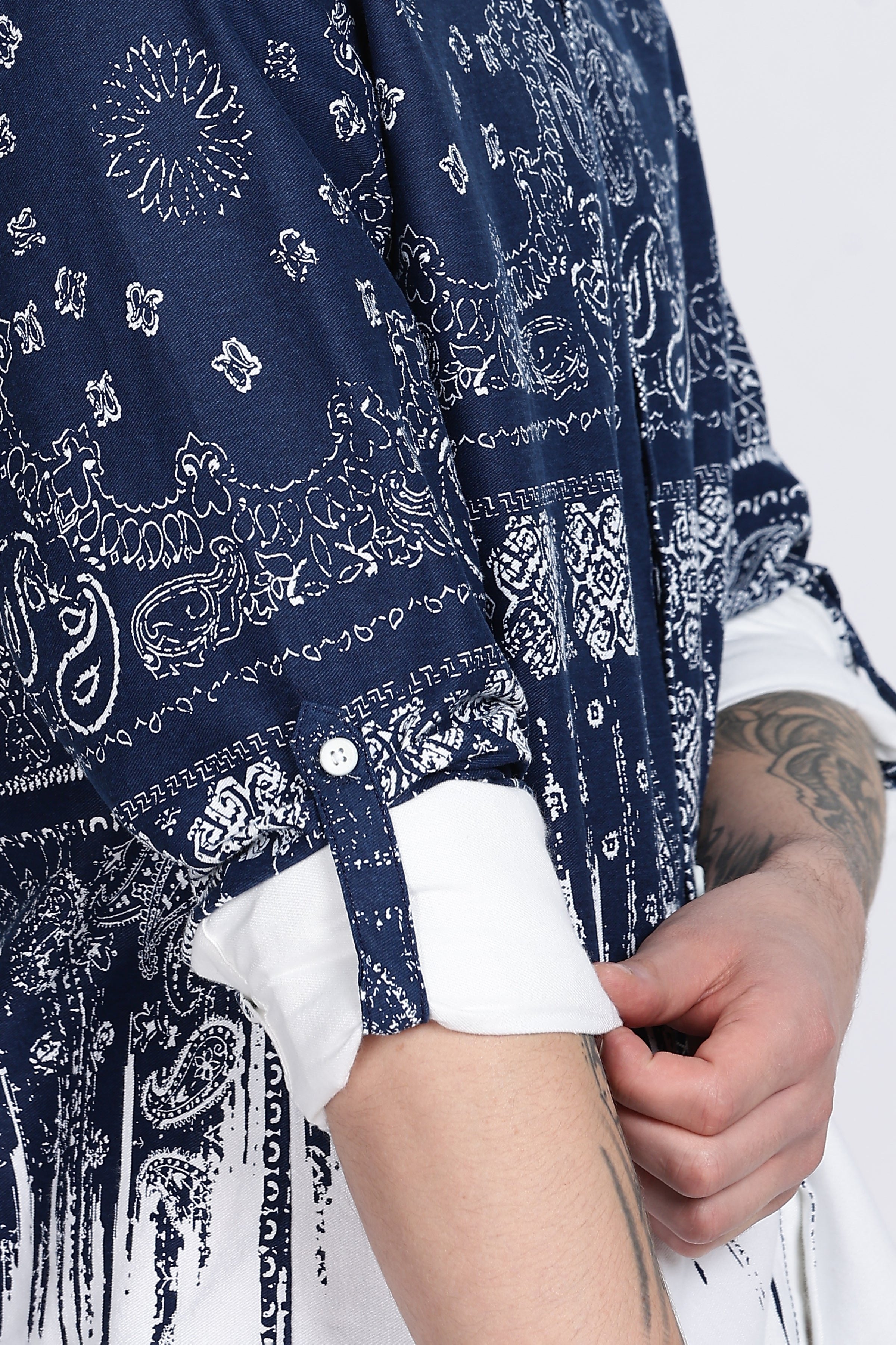 Navy Floral Print Slim Fit Full Sleeve Casual Shirt