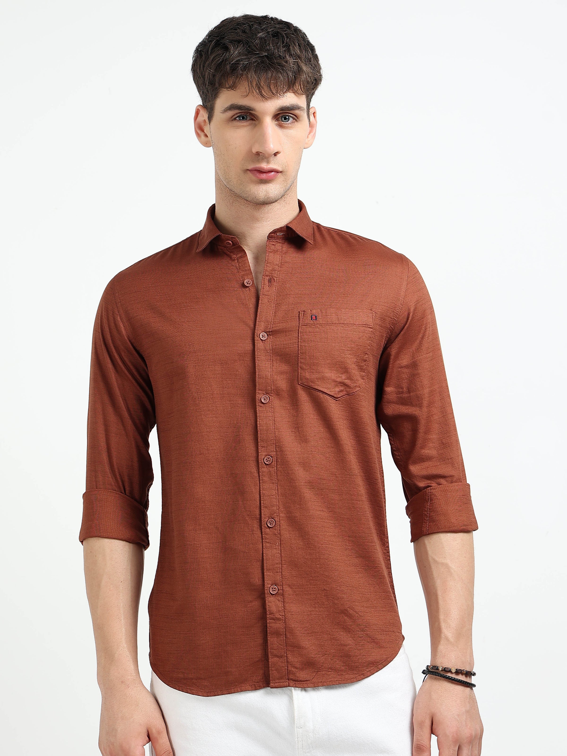 Keep your style effortless and refined with this Men’s Rust Solid Slim Fit Casual Shirt from Cool Colors. Designed in a refreshing green shade, this shirt offers a modern slim fit that enhances your silhouette while ensuring comfort throughout the day.